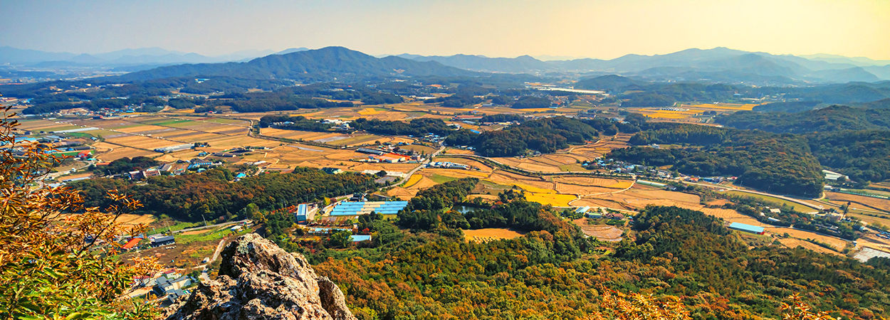 늦가을 사방이 확 트인 정상에서 내려다보는
