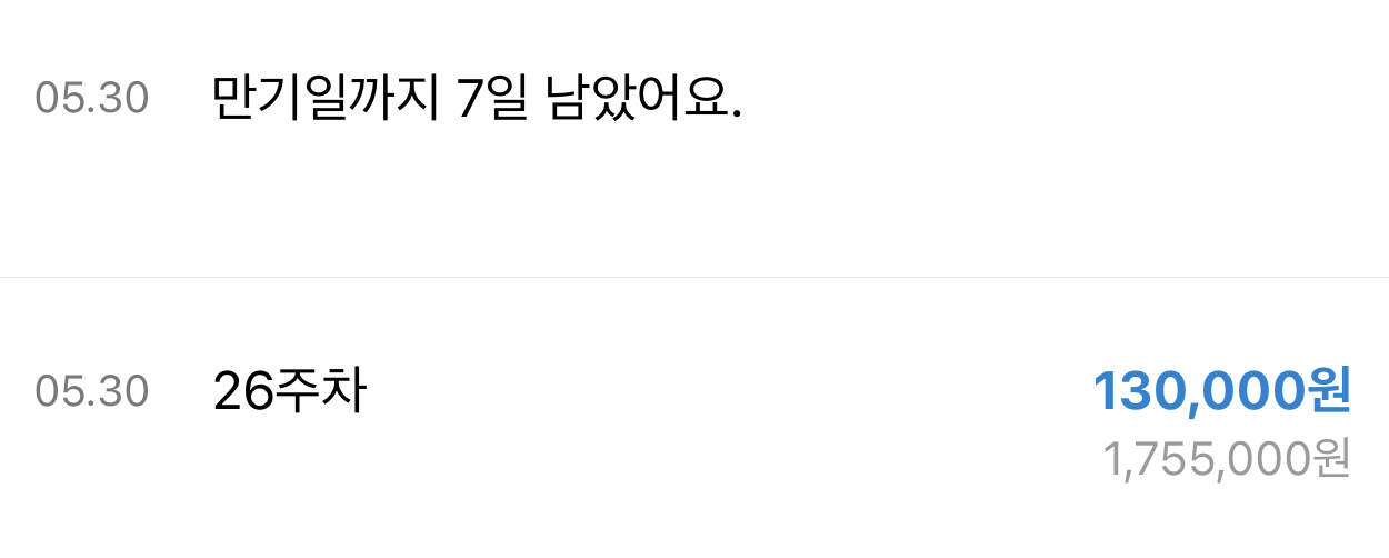 적금을 개설한 요일마다 자동이체가 진행돼요.