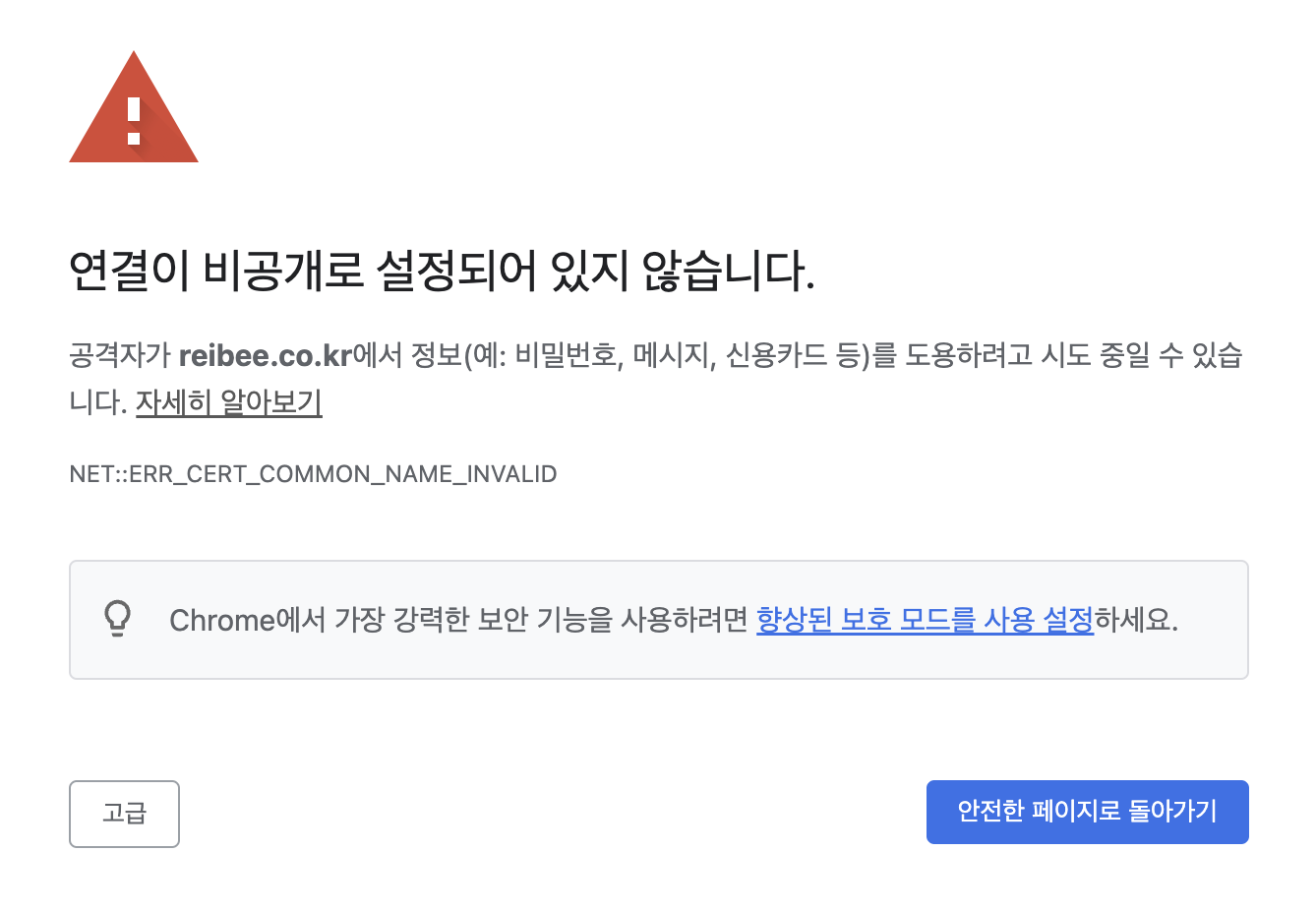 보안 접속 인증서가 없어서 생기는 일일까요?