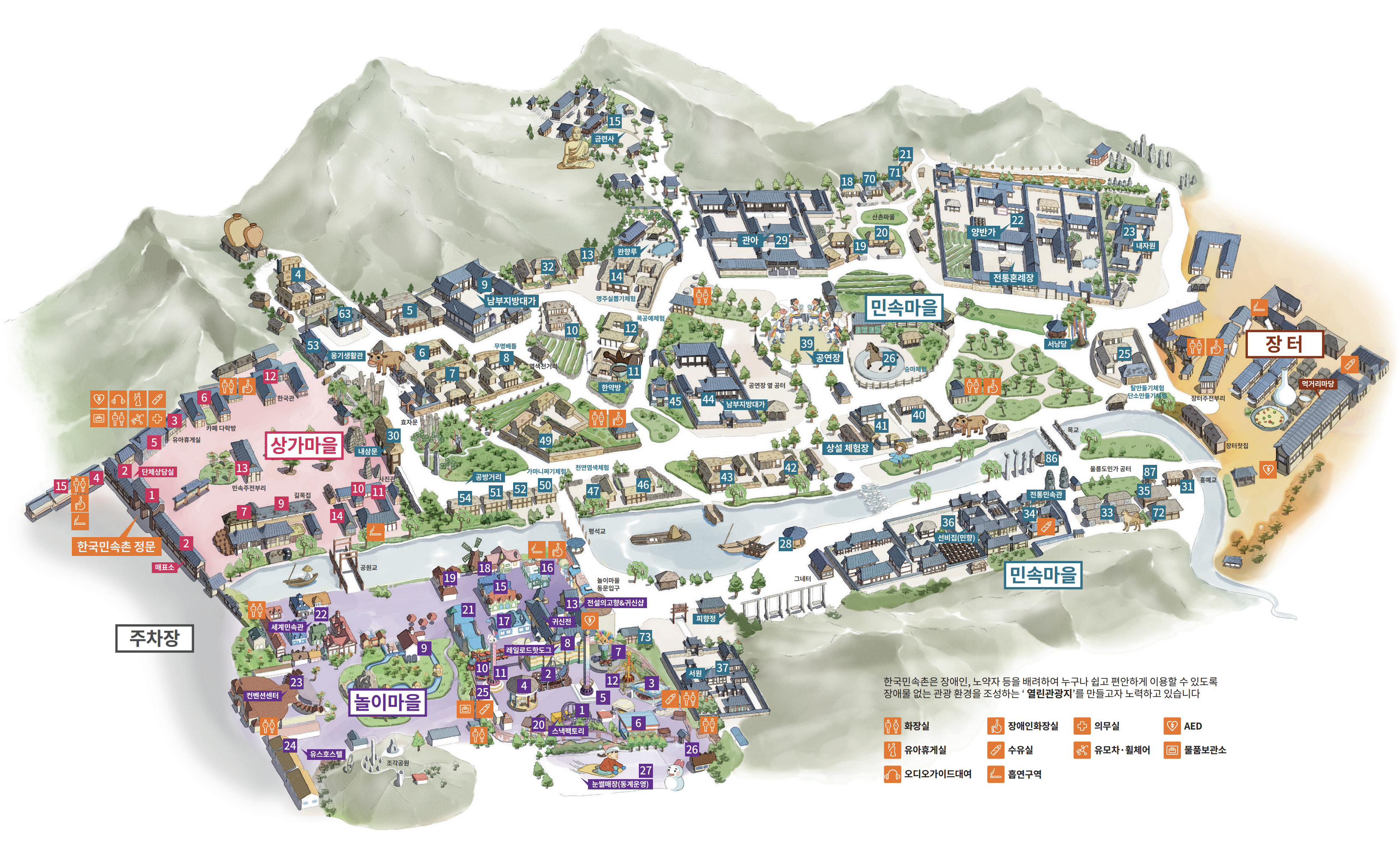 민속마을과 놀이마을을 합쳐 약 30만평 규모이며